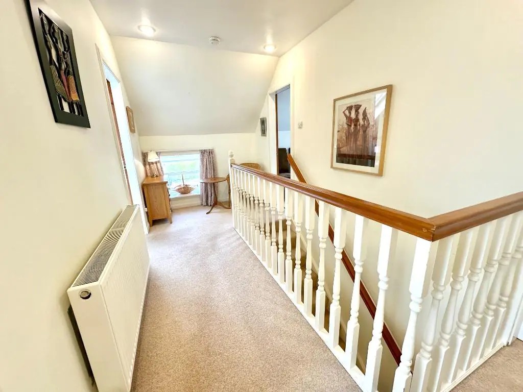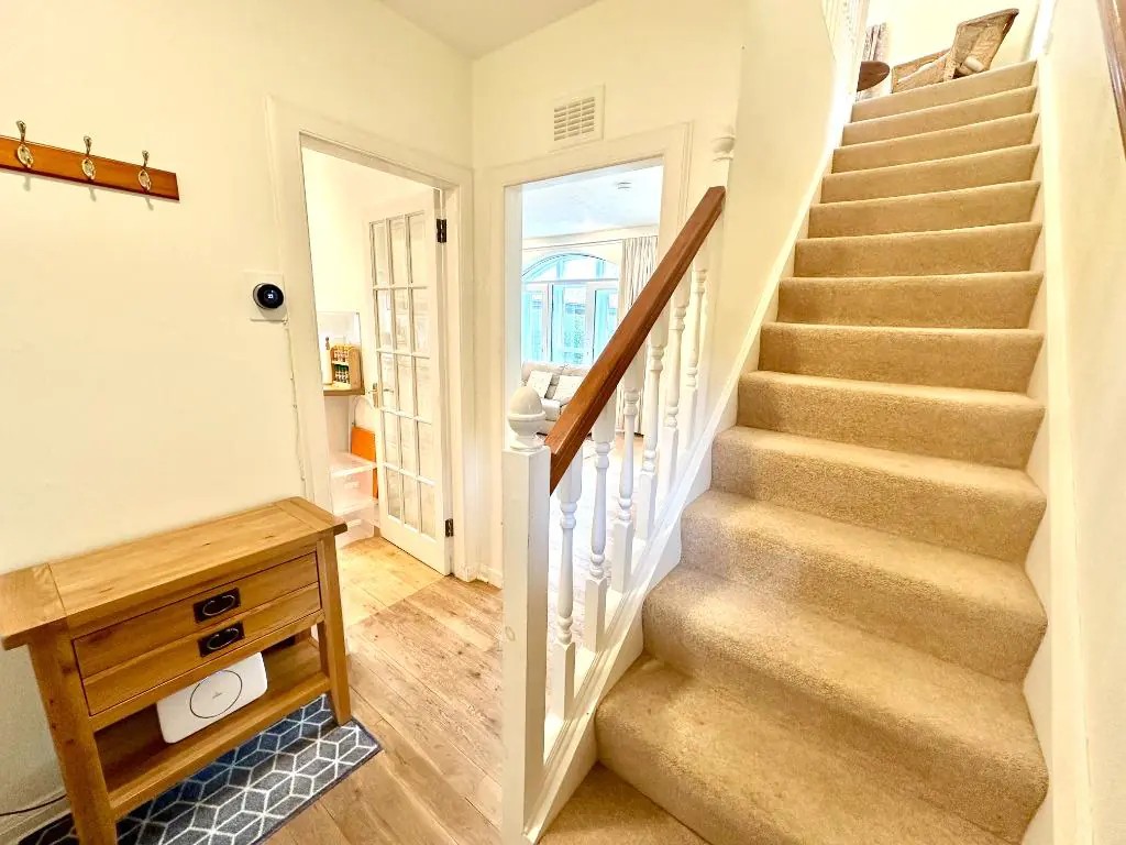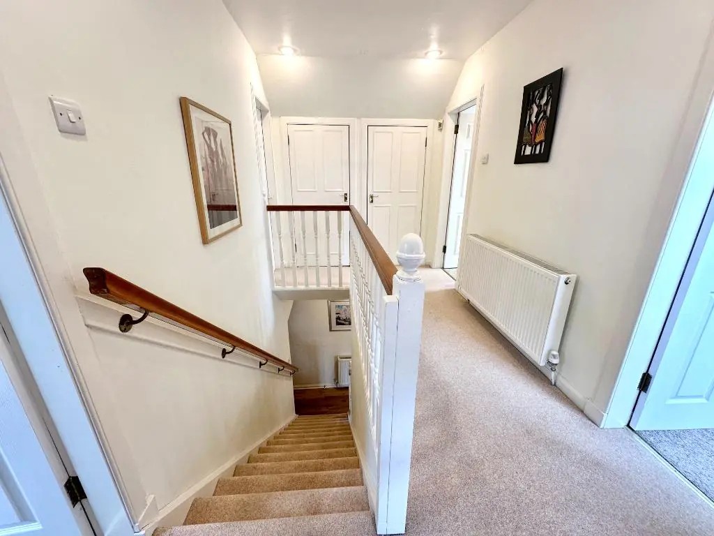 Bedrooms and bathrooms located on the first floor accessed by stairs.